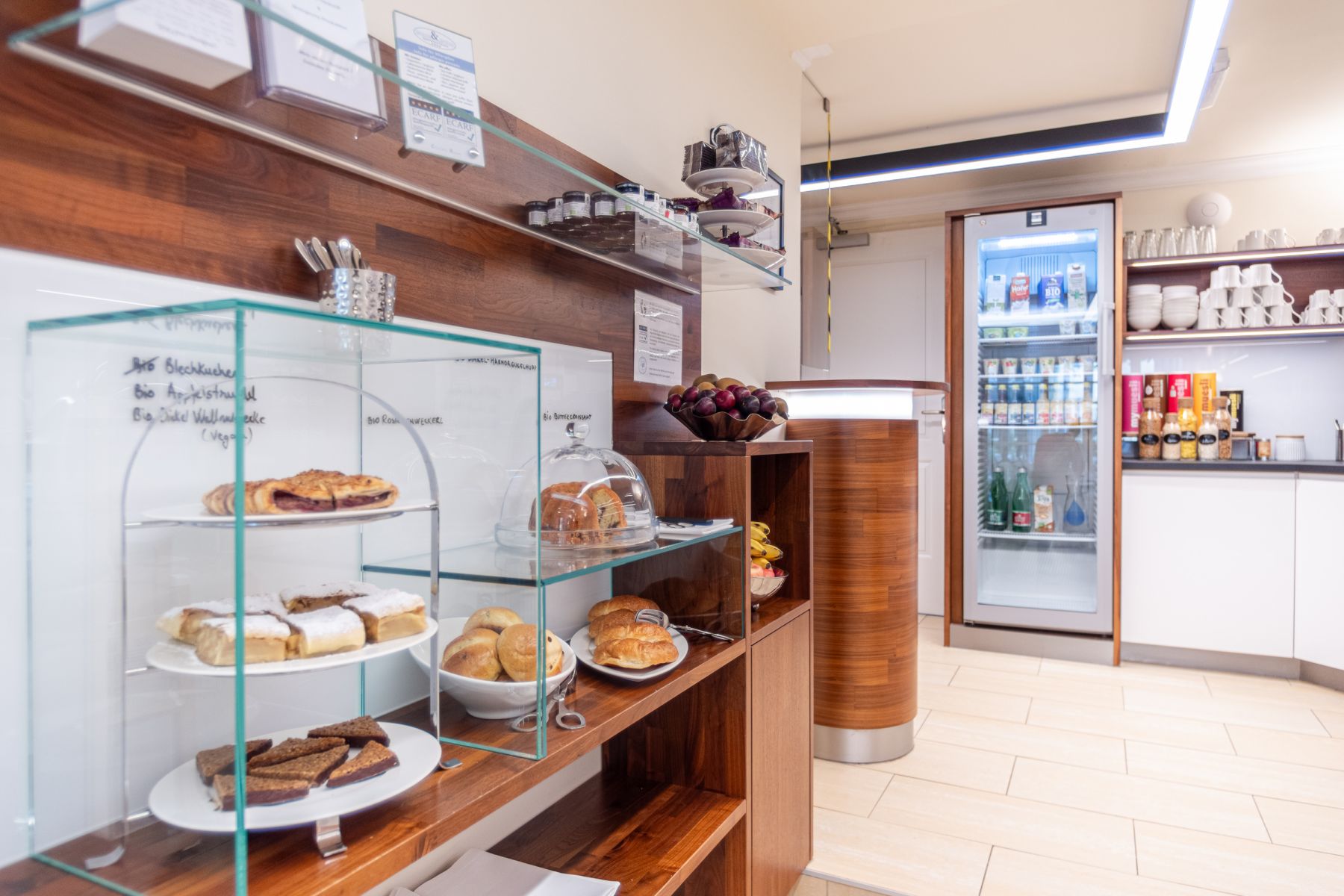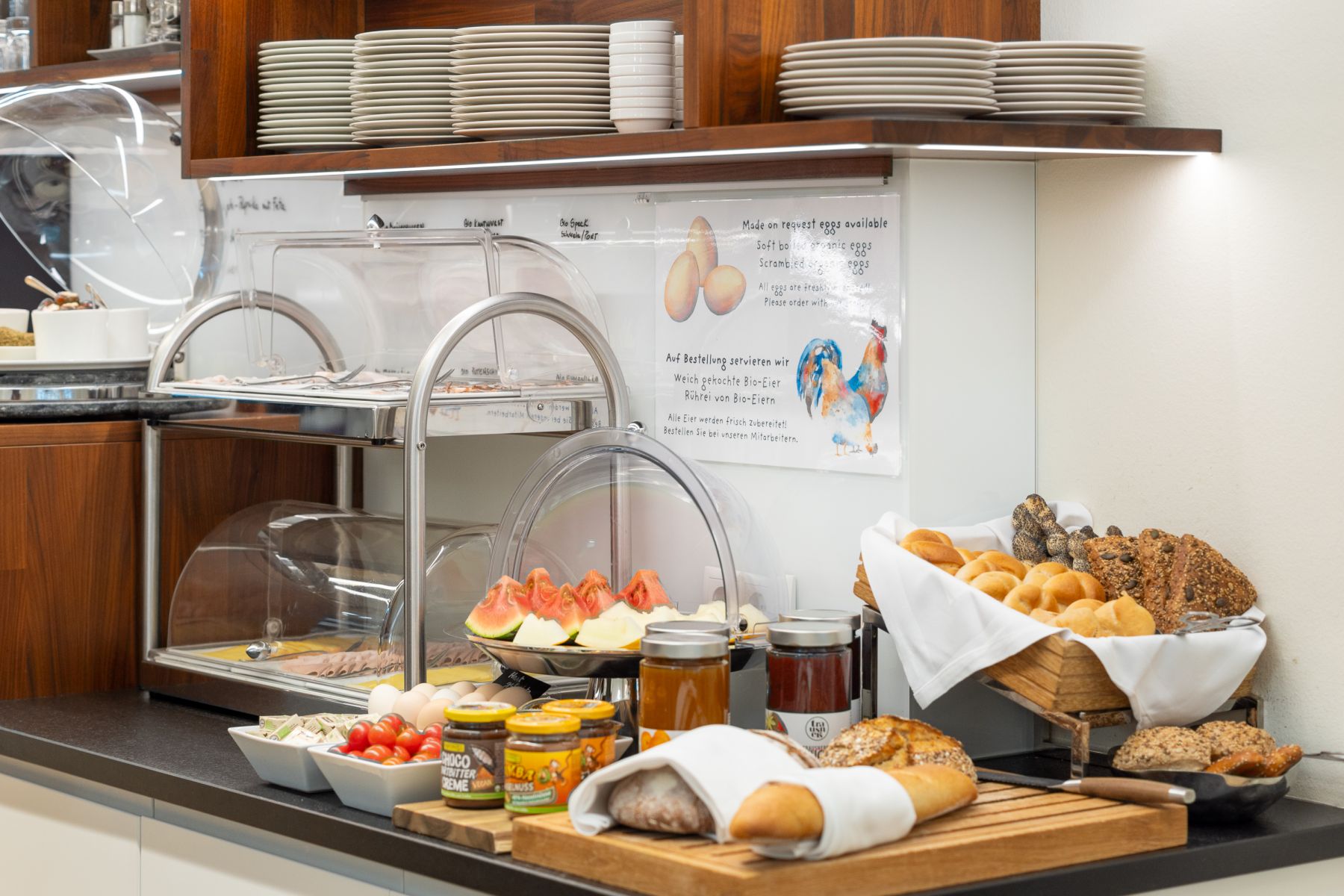Fresh organic bread & rolls, jams and spreads, sausages, muesli, yoghurt, fruits, cakes and much more ....